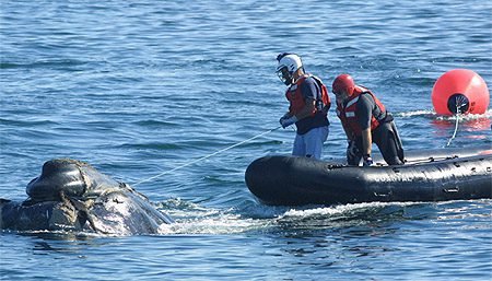 Since 1984, the Center for Coastal Studies has freed over 200 large whales and marine animals from entanglements using specialized techniques. For years, CCS was the only East Coast organization federally authorized by the National Marine Fisheries Service to disentangle large whales like the North Atlantic Right Whale. Photo Credit: Center for Coastal Studies.