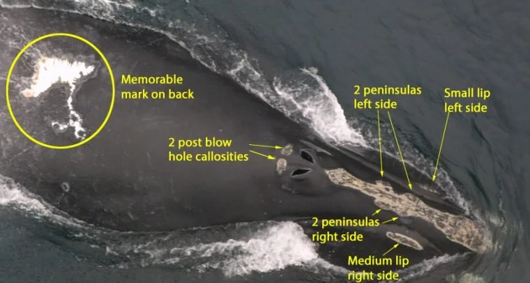 Each calving season, survey aircraft trace systematic routes over the southeastern United States. Observers photograph whales from above, capturing high-resolution images of the white callosity patterns on their heads. These markings serve as individual identifiers, matched against thousands of images in the North Atlantic Right Whale Catalog.