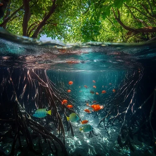Mangroves are among the most biologically rich ecosystems on Earth. They are associated with more than 1,500 animal species, providing shelter and breeding grounds for fish, amphibians, birds, reptiles, and marine mammals. In the Sundarbans of India and Bangladesh—the largest mangrove forest in the world—approximately 500 Royal Bengal tigers roam an intertidal landscape that supports one of the planet’s most iconic predators. Yet this biodiversity is under threat. Fifteen percent of mangrove-associated species now face extinction, including sharks, manatees, otters, and even sloths in regions spanning the Americas and the Asia-Pacific.