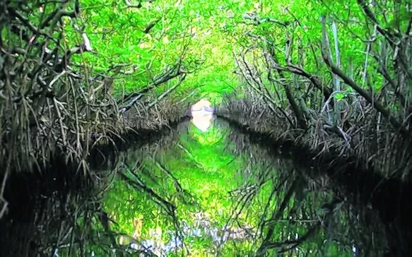 A mangrove passage near Everglades City, Mangrove forests such as this one are rapipidly pushing north along Florida coaslines. Photo credit Sarasota Herald-Tribute